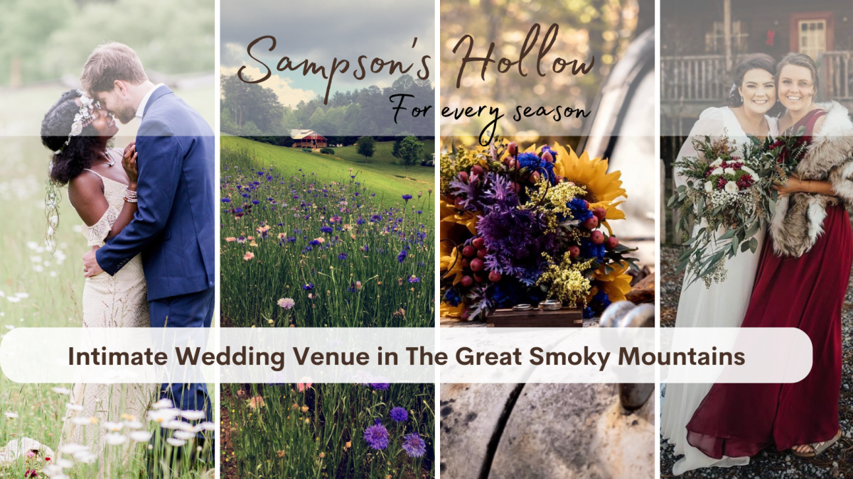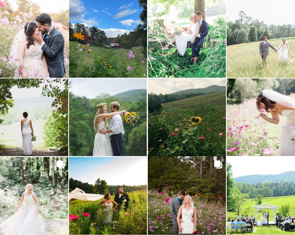 March 3, 2023Seasons for Weddings? The popularity of outdoor wedding venues continues to increase with brides and their grooms. One of the most frequent questions our wedding coordinators hear when doing tours of our venue is, “will the wildflowers be blooming.” Followed by, “what will the mountains look like when I get married?” The brides who book our venue from out of state, sight unseen, probably need the most information and visuals since they are not familiar with East Tennessee. However, there’s a saying among those of us in this area. “If you don’t like the weather now, wait 15 minutes, and it will change.” The saying goes, “a picture is worth a thousand words.” This blog is lengthy, so it’s OK to look at the photographs from each season!